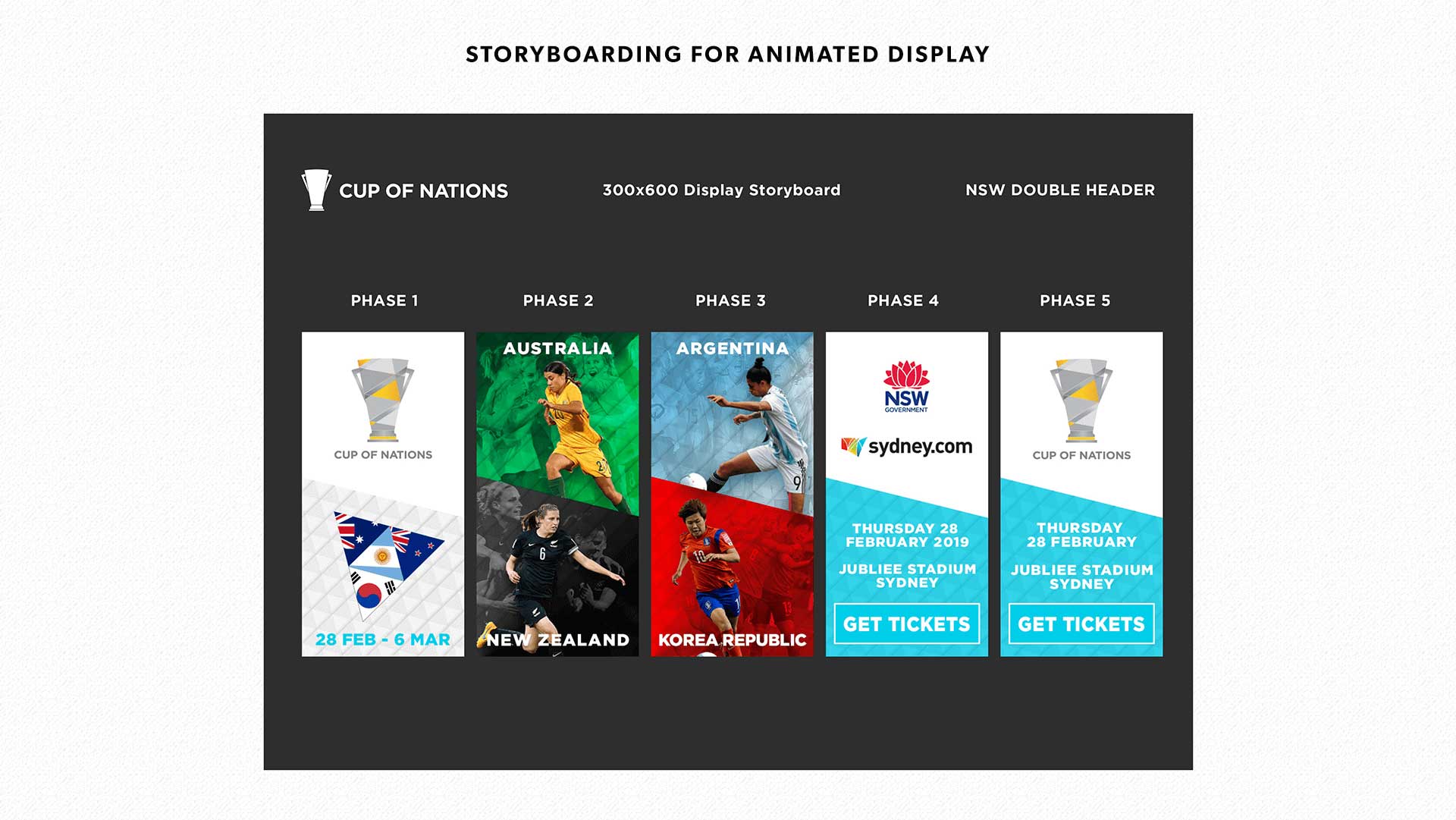 This was a rare opportunity where I was given the task of designing an international football tournament from scratch, from conception through to finished art. I developed the logo, trophy, creative look and feel and implemented the art execution and management of designs required. All the work was completed within an eight week period.