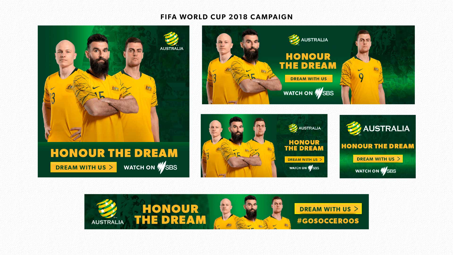 For the past 5 years I have worked on numerous campaigns for the Socceroos, two world cups, asian cups and designed graphics across a spectrum of media. Significant tasks have been the implementation and art direction of their campaigns since 2013, brand guideline development, graphic design of assets and overall visual brand direction. The above are just a few examples of this work.
